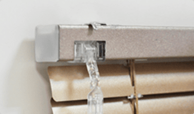 - Система управления. Включает шнур для подъема и опускания жалюзи, а также трость (палочку) для поворота ламелей и регулировки освещенности.